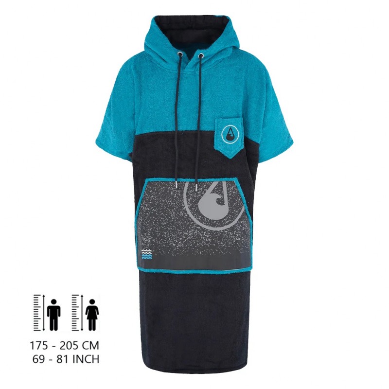 Extremely soft and warm poncho made from bamboo viscose and cotton, size XL. Gentle on the skin and perfect for changing, drying or relaxing after sports or water activities. The double-layer hood with high collar keeps your wet head protected. The large front pocket offers space for accessories or cold hands.