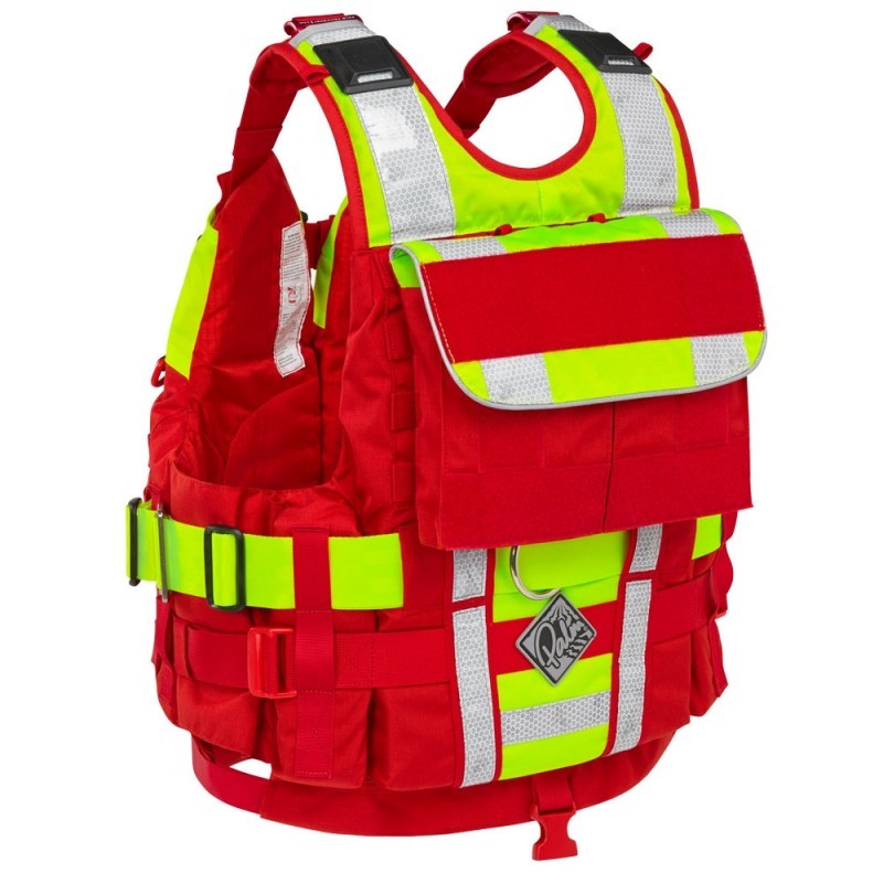 A fully adjustable personal flotation device designed for whitewater rescue teams. Easily adapts to different users and operational needs with a modular and secure setup.