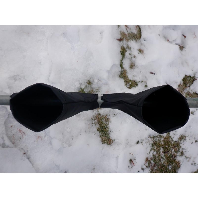 Lightweight pogies gloves offer excellent hand protection during cold-water paddling.