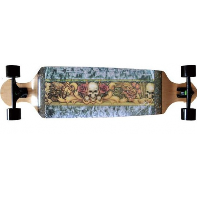 We begin with a huge 2" drop, which gives the rider the lowest safest possible ride against the road. When you ride this board, you feel at one with the road. You feel ultimate control, stability and safety because of the low center of gravity. The front of the board is super wide at 10.5" and tapers towards the tail. This profile gives the rider a complete sense of stability and control.