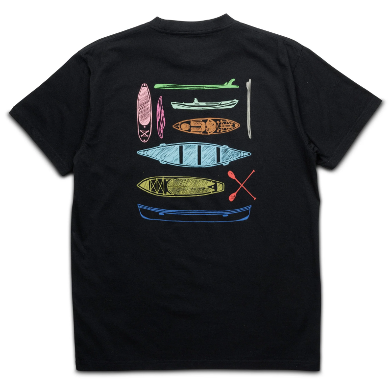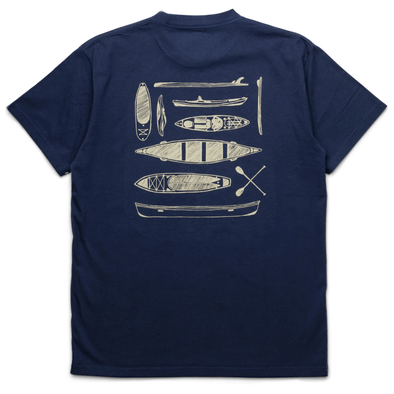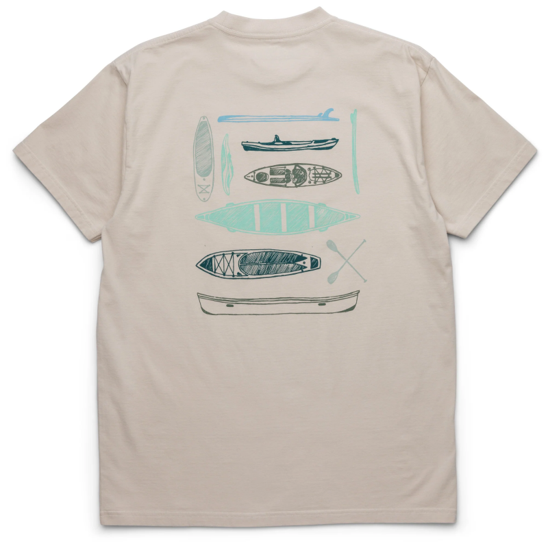 A water-inspired tee celebrating KAVU days and time spent on the water, featuring graphics of favorite H2O toys like canoe, SUP, and kayaks. Made from soft, hypoallergenic certified organic cotton for all-day comfort.