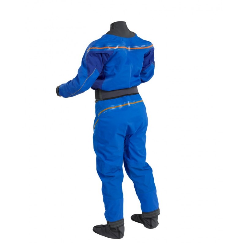 Tuta stagna semplificata e resistente per acque mosse, basata sulla collaudata giacca Atom. Il nuovo taglio riduce le cuciture e i punti di usura. La cerniera posteriore impermeabile flessibile, le calze rinforzate e le guarnizioni in lattice assicurano massima protezione dall’acqua.