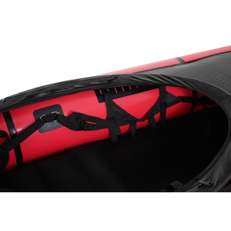 Il GP Flow è un packraft sportivo e molto robusto per le acque bianche più impegnative. Con tubi stretti da 25 cm, poco rocker e una poppa simile a quella di un kayak, raggiunge alte velocità e consente persino la manovra di eskimo roll agli esperti. Non è adatto ai principianti, ma ai packrafter ambiziosi che cercano prestazioni tra packraft e kayak.
