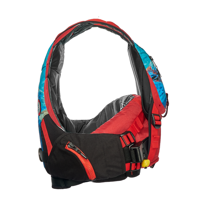 Gilet da salvataggio ad alta galleggiabilità in edizione limitata, sviluppato in collaborazione con Benny Marr e l’artista Anna Kai. Progettato per condizioni impegnative in acque bianche e per uso professionale nel soccorso fluviale.