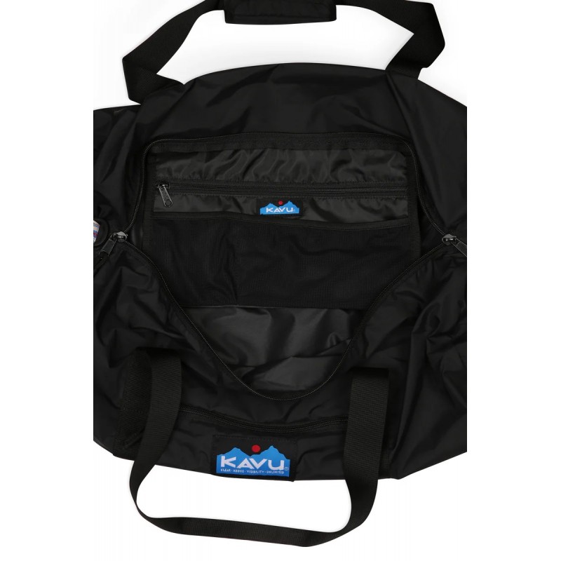 Large duffel, adjustable and detachable cross body shoulder strap with plastic d-ring and snap hook hardware, fixed padded hand straps secured with box stitch, grab handles on each side, one main compartment with two-way zip closure, exterior zip pocket, internal mesh zip pocket and stash pockets, rope loop zip pulls.