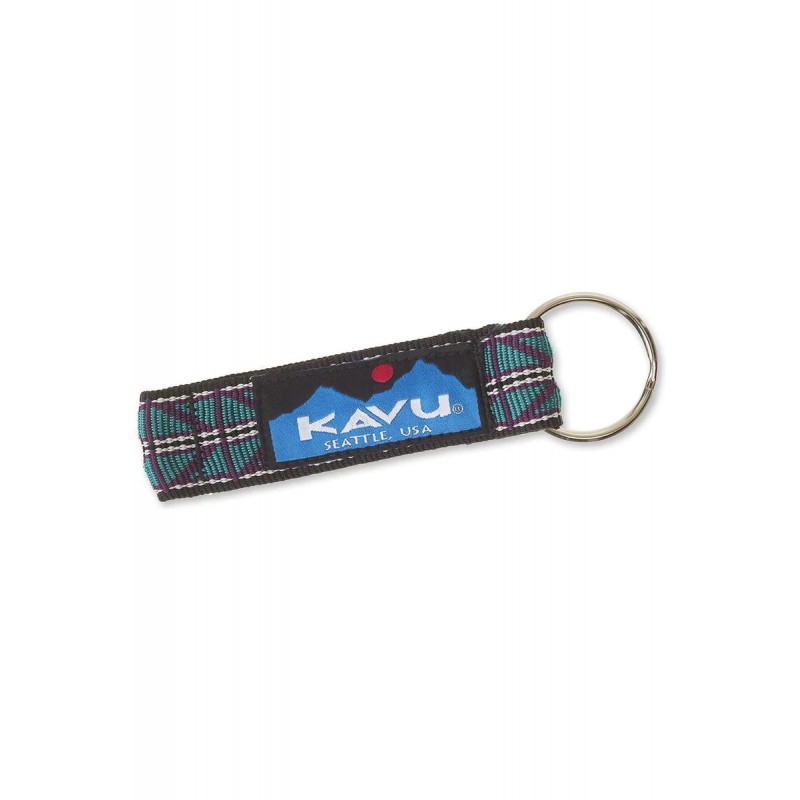 Ploski najlonski trak z vzorcem, dolg 9 cm, z deljenim nikljevim obročkom premera 3,2 cm.